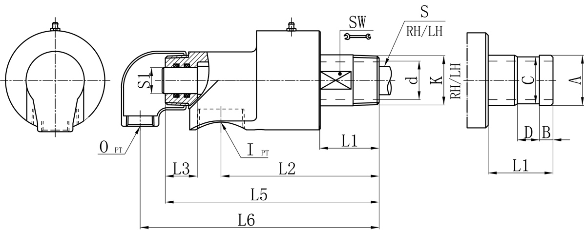 | Model | K | I | O | S1 | d | L1 | L2 | L3 | L5 | L6 | SW | 法蘭式外管尺寸對照表 | |||