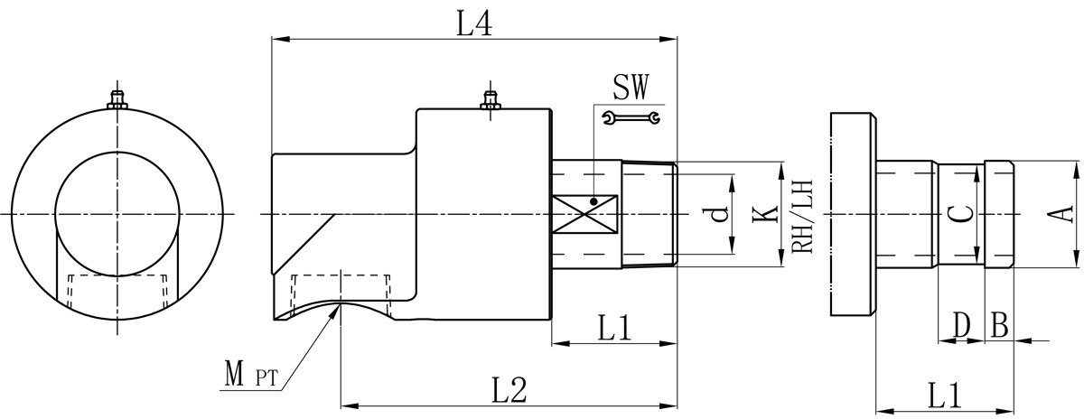 | Model | K | M | d | L1 | L2 | L4 | SW | 法蘭式外管尺寸對照表 | |||