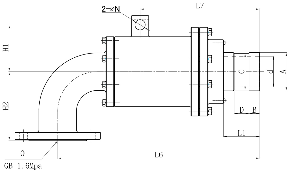 Model O d L1 L6 L7 N H1 H2 法蘭式外管尺寸對照表