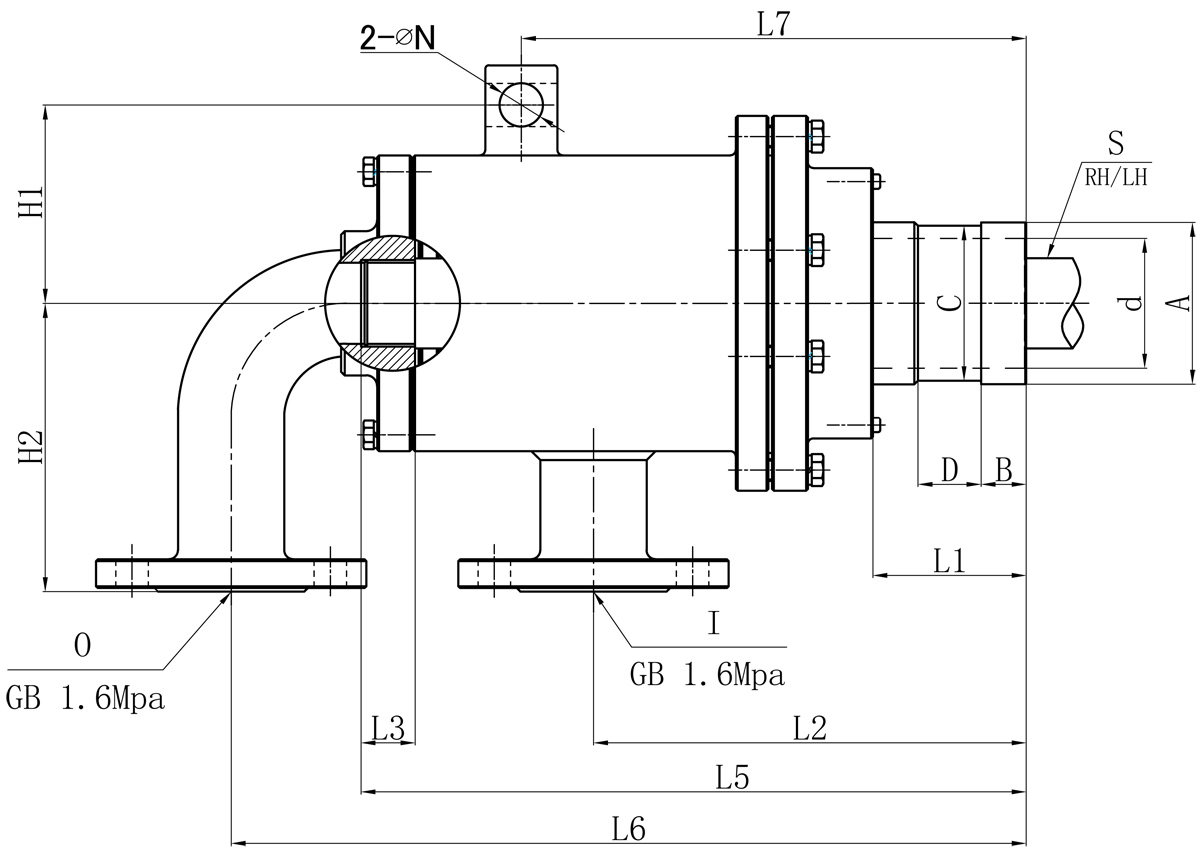 | Model | I | O | S | d | L1 | L2 | L3 | L4 | L6 | L7 | N | H1 | H2 | 法蘭式外管尺寸對照表 | |||